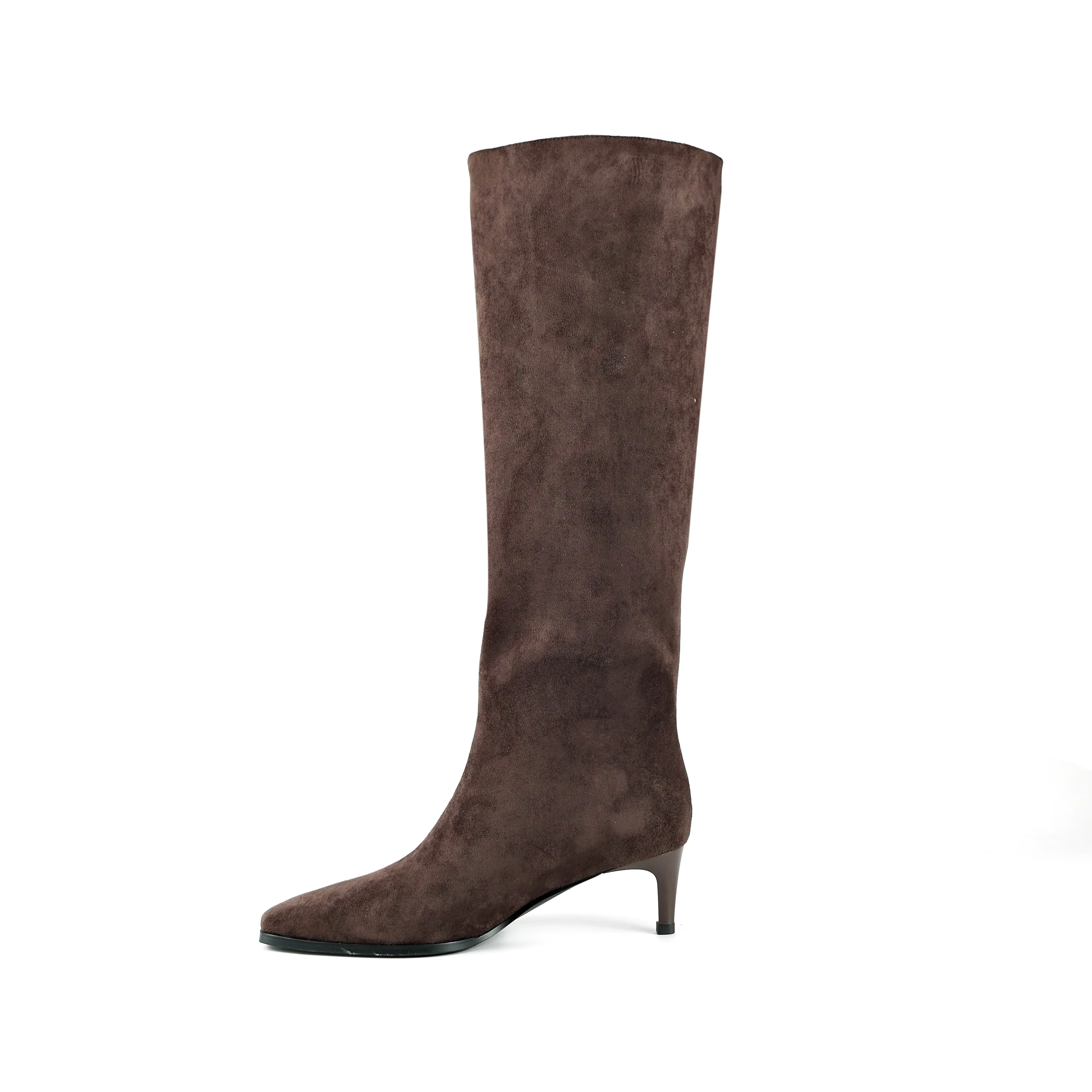 Women's Western Brown Suede Knee-High Boots-Pointed Toe Slim Heel Rubber Outsole Elegant Fall Winter Footwear